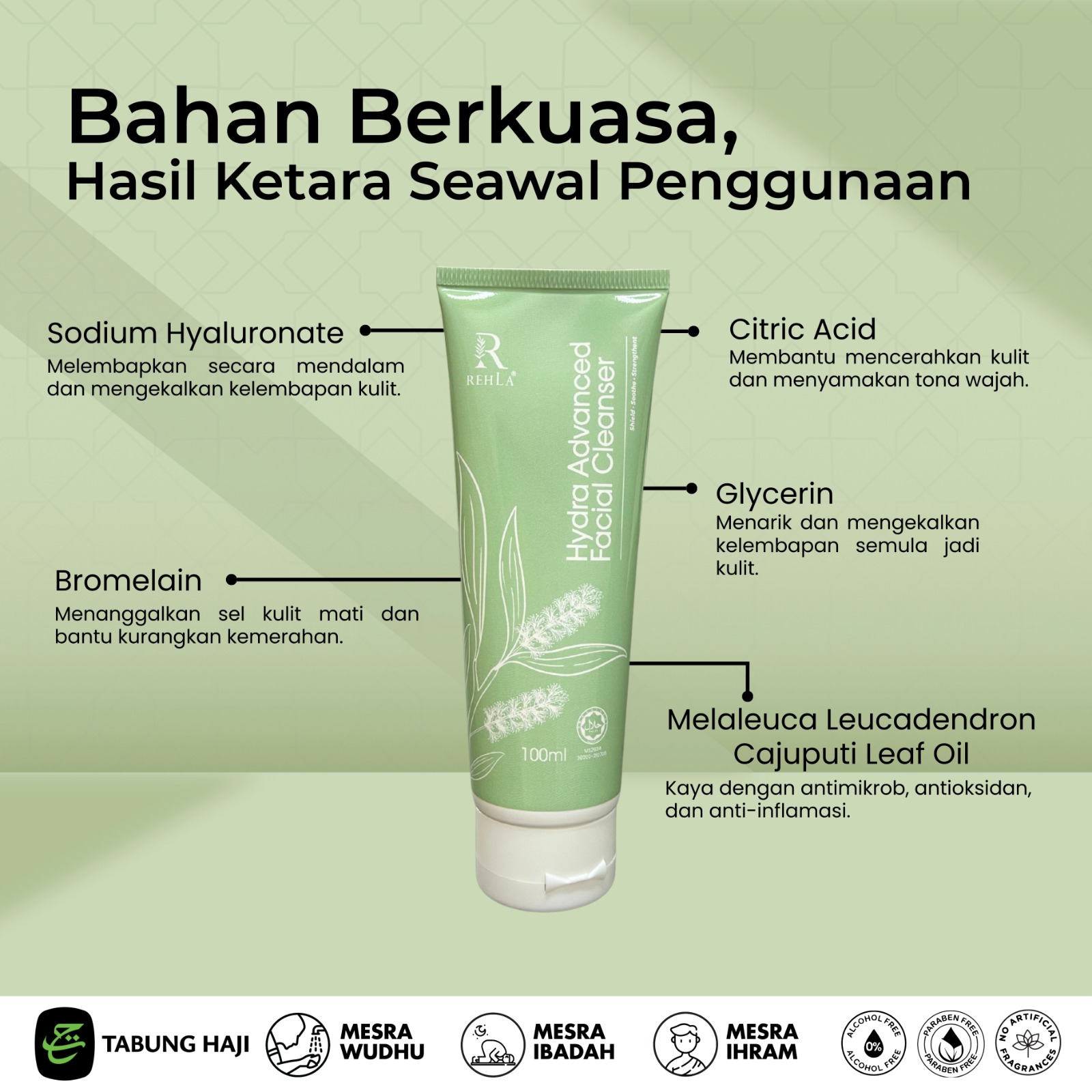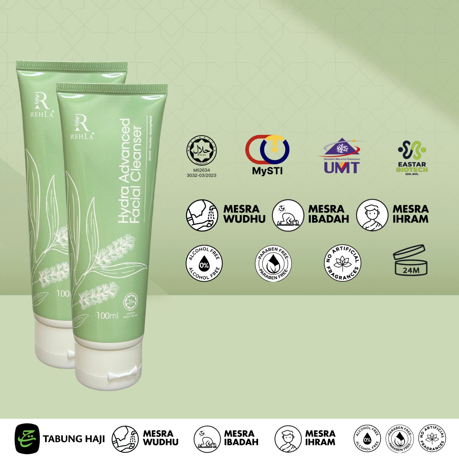 Suitable for all skin types, sensitive skin, friendly for pilgrims during Ihram & for ritual ablutions and for daily usage