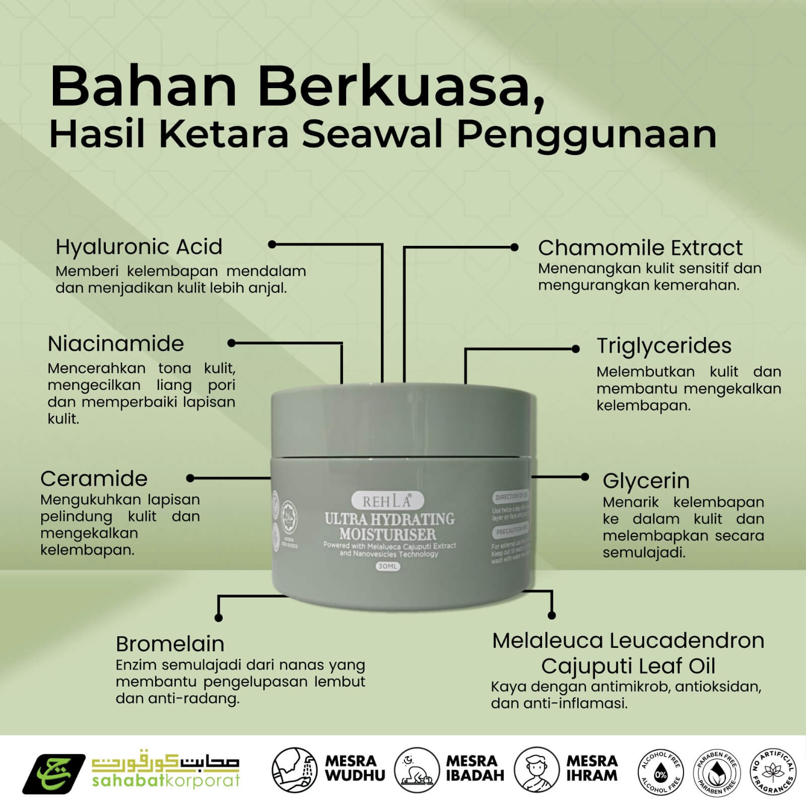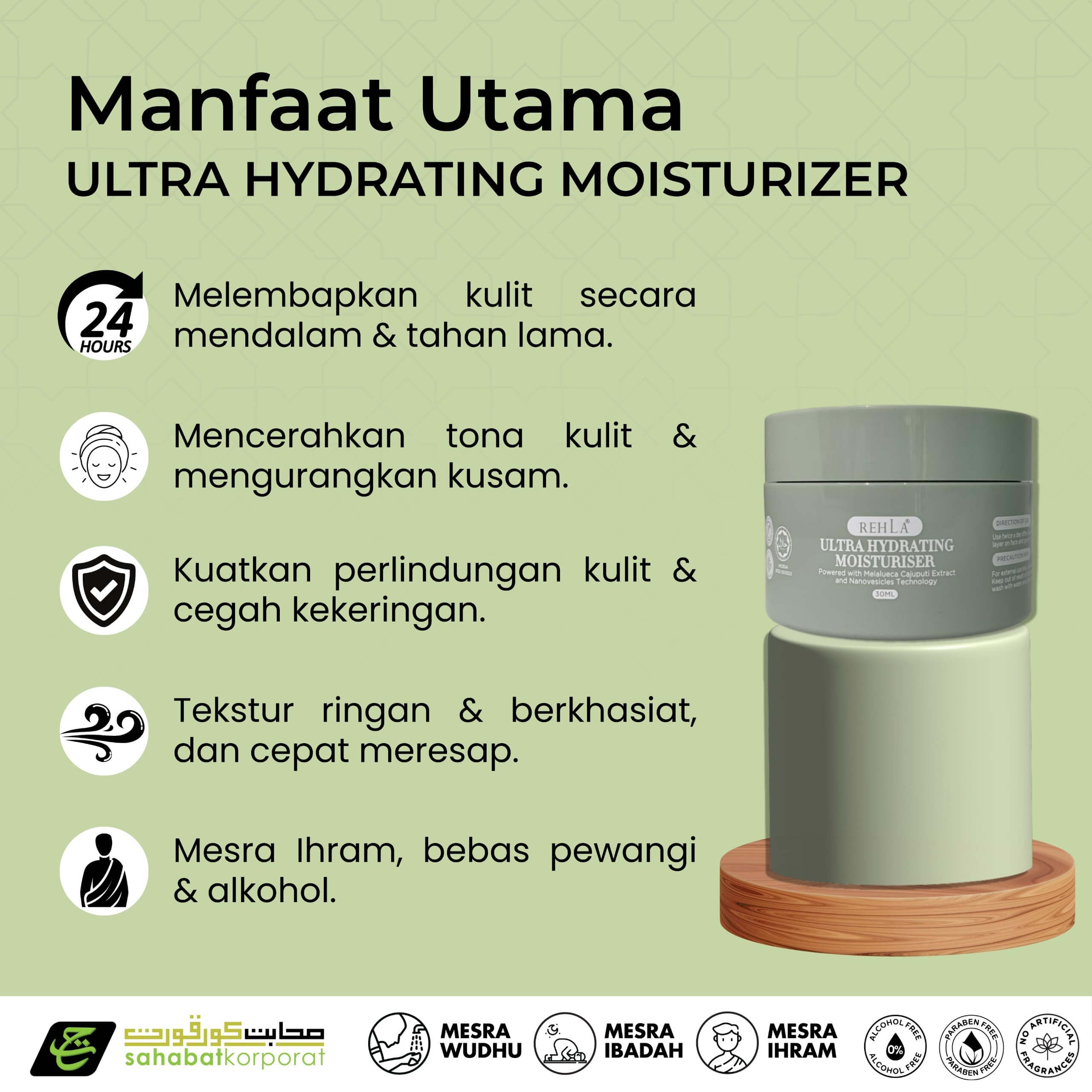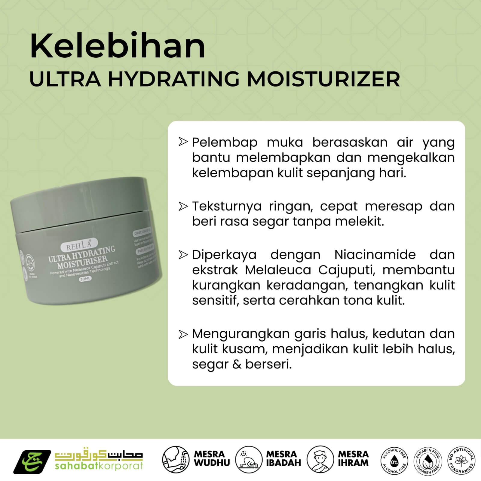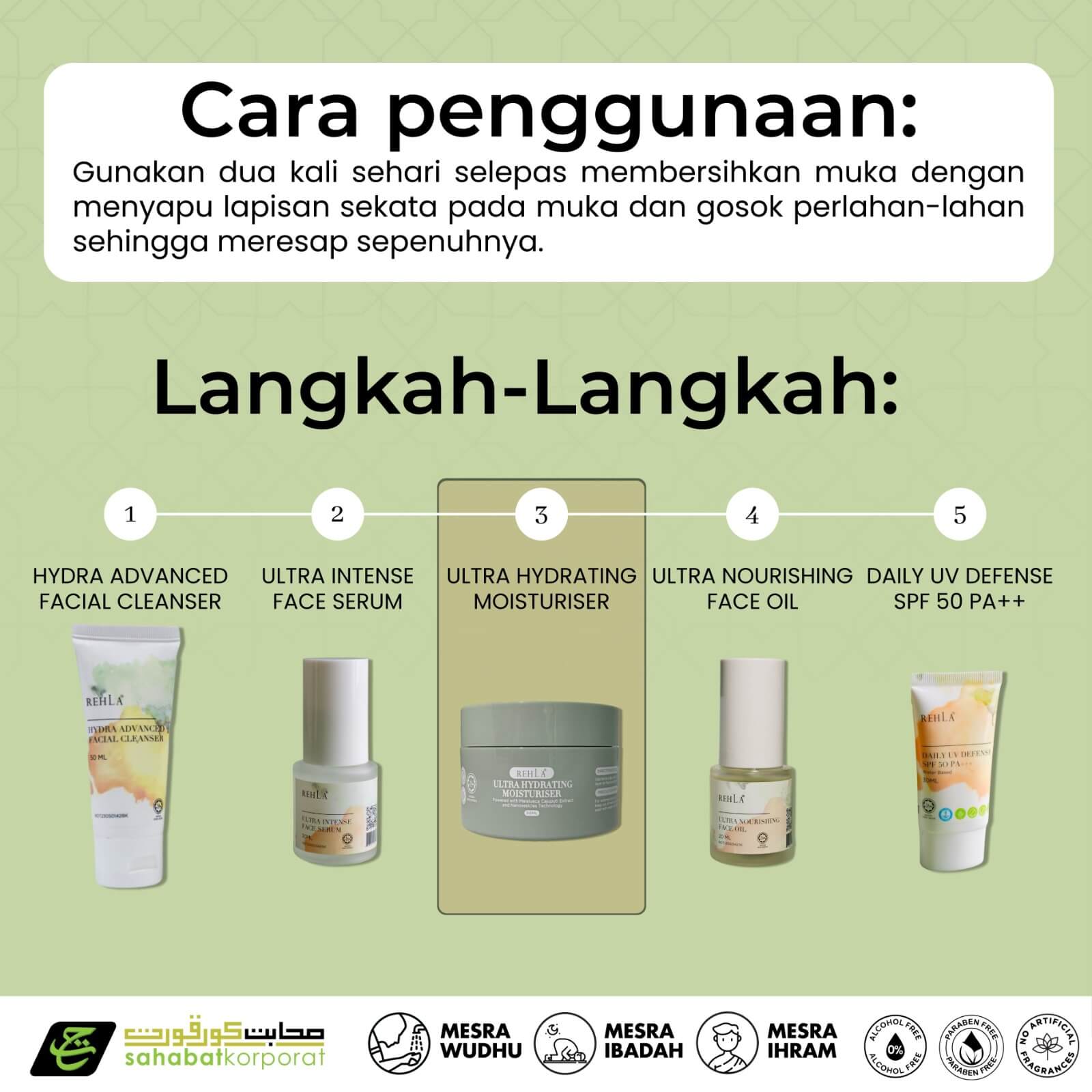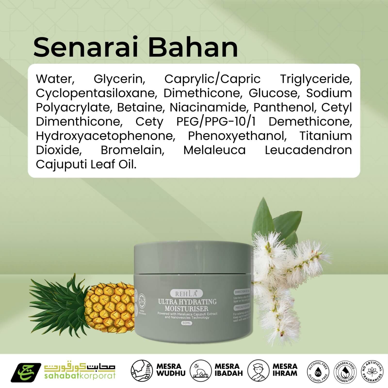 Rehla Ultra Hydrating Moisturiser this non-greasy, water-based face moisturiser is specially formulated to deliver deep, long-lasting hydration without weighing down the skin. Its lightweight texture absorbs quickly into the skin’s layers, helping to replenish and lock in moisture while maintaining a fresh, clean and non-oily finish. Perfect for warm climates, active lifestyles and daily use, it keeps skin comfortably hydrated without leaving any sticky residue.